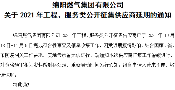 关于2021年工程、服务类公开征集供应商延期的通知