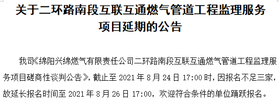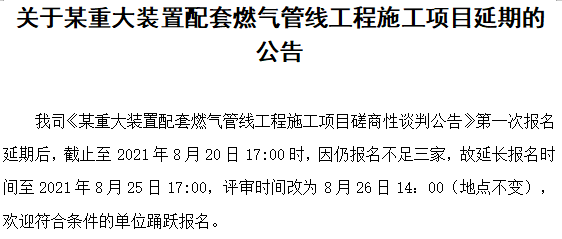 关于延长某重大装置配套燃气管线工程施工项目报名时间的公告