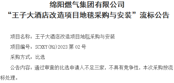 “王子大酒店改造项目地毯采购与安装”流标公告