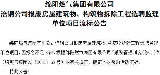 涪钢公司报废房屋建筑物、构筑物拆除工程选聘监理单位项目流标公告