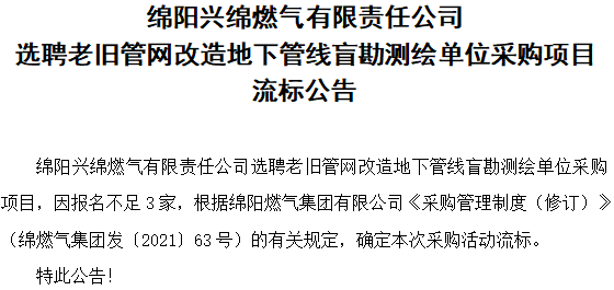 选聘老旧管网改造地下管线盲勘测绘单位采购项目流标公告