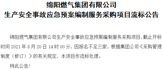 生产安全事故应急预案编制服务采购项目(第二次)流标公告
