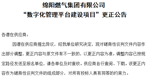 “数字化管理平台建设项目”更正公告